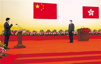 习近平指出,中华民族伟大复兴已经进入不可逆转的历史进程。推进“一国两制”在香港的成功实践是这一历史进程的重要组成部分。我们坚信,有伟大祖国的坚定支持,有“一国两制”方针的坚实保障,在实现我国第二个百年奋斗目标的新征程上,香港一定能够创造更大辉煌,一定能够同祖国人民一道共享中华民族伟大复兴的荣光。