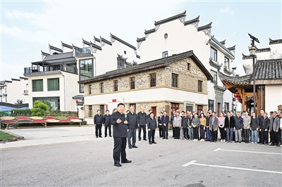 10月10日至13日,中共中央总书记、国家主席、中央军委主席习近平在江西考察。这是11日下午,习近平在上饶市婺源县秋口镇王村石门自然村考察时,同村民们亲切交流。