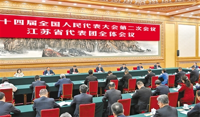 3月5日,中共中央总书记、国家主席、中央军委主席习近平参加他所在的十四届全国人大二次会议江苏代表团审议。