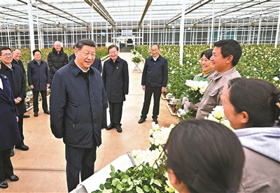19日下午,习近平来到丽江现代花卉产业园。在展厅,他察看玫瑰、马蹄莲鲜切花品种展示,听取云南花卉产业发展情况介绍。在玫瑰花种植区,他了解智能温室无土栽培技术,同现场村民、技术人员亲切交谈。他还来到玫瑰花分级包装生产线,察看筛选、分级到包装、发货的全流程,对鲜切花通过物流及时外销表示肯定。习近平指出,云南花卉产业前景广阔,要着眼全产业链,从种业端、种植端、市场端不断深耕细作,让这一“美丽产业”成为造福群众的“幸福产业”。