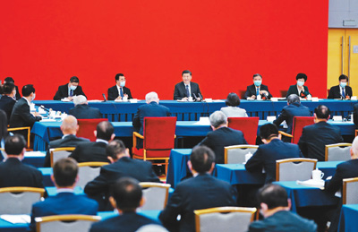 中共中央政治局常委、全国政协主席汪洋参加看望和讨论。