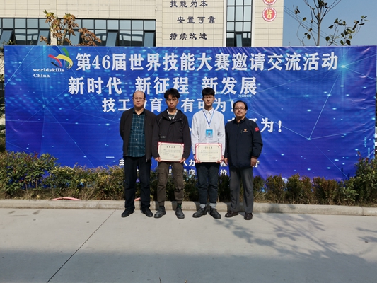 卫江和党武刚老师指导学生参加“汽车喷漆”赛项,2018级汽修专业董盼龙、王思远同学获三等奖。