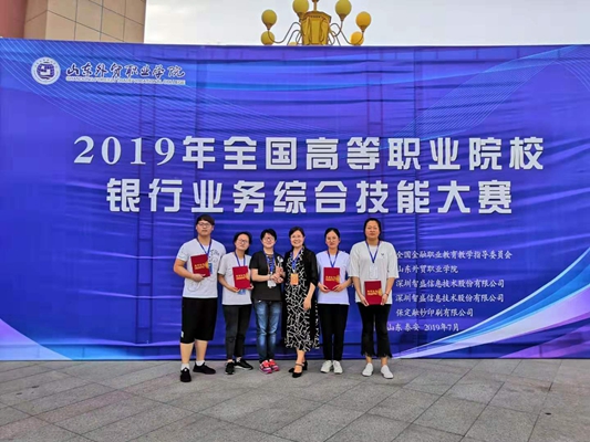 7月4日,由全国金融职业教育教学指导委员会主办的2019年全国高等职业院校银行业务综合技能大赛在山东泰安举行,来自全国的111支代表队共444名选手参加了比赛。学校金融与保险学院马彦、张建红两位老师指导的2018级金融管理专业杨力、吕婉莹、王婷婷和梁露露4位同学组队参赛,获团体二等奖。
