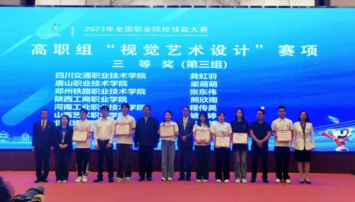 9月25日-28日,2023年全国职业院校技能大赛组高职组“视觉艺术设计”赛项在云南昆明举行,来自全国31个省、自治区、直辖市的71个代表队同台竞技。经过激烈的技能比拼,学校文化传播与艺术设计学院孙充老师指导的2021级广告艺术设计专业熊欣雨同学获得全国三等奖。