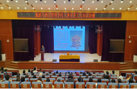 授牌仪式结束后,陕西省技能大师、西安市雁塔区第八批非物质文化遗产代表性项目——传统煮茶技艺传承人、陕西省技能大师工作室孙斌在学校报告厅为旅游与酒店管理学院近200名师生现场开展大唐贡茶文化知识讲座。讲座分别从大唐贡茶的历史背景、基础知识、生产加工、饮用文化以等几个方面为大家进行了细致的讲述。使全体师生更深入地了解唐代文化的产生背景、全面认识了大唐皇家贡茶这一辉煌璀璨的文化现象、系统展示了大唐茶文化的核心精髓,树立了对中华茶文化的文化自信。
