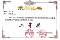 近日,由中国汽车流通协会和中国就业培训指导中心共同举办的第三届全国汽车流通行业职业技能竞赛全国总决赛闭幕,由机电工程与汽车科技学院王瑛老师指导,2019级汽车检测与维修专业五年制学生李耀星参加“二手车经纪人”赛项比赛获二等奖。