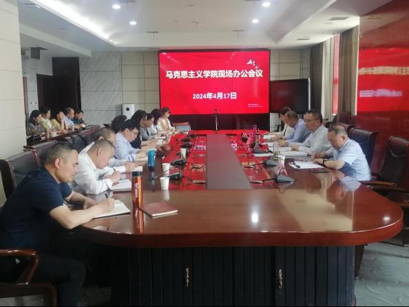 4月17日下午,校党委书记龙治刚,校党委副书记王建斌与学校党政办公室负责人到马克思主义学院召开现场办公会。马克思主义学院副院长张宝婧主持会议,马克思主义学院全体教师和工作人员参加会议。