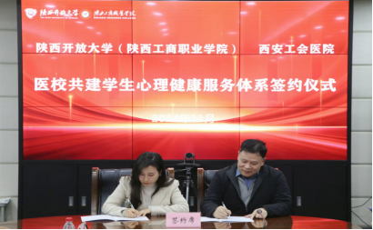 11月15日下午,学校与西安工会医院举行医校共建学生心理健康服务体系合作协议签约仪式。副校长苗晓锋出席仪式并讲话,西安工会医院精神科主任王怀海教授、副主任朱建彪,党委学生工作部及相关学院师生代表参加签约仪式。