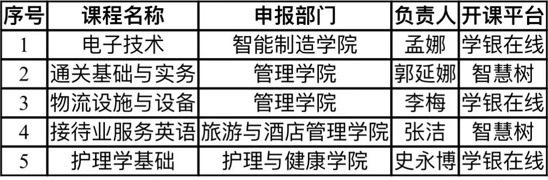 近日,陕西省教育厅办公室公布了《2024年陕西省职业教育在线精品课程认定结果》,学校孟娜副教授负责的《电子技术》、郭延娜副教授负责的《通关基础与实务》、李梅教授负责的《物流设施与设备》、张洁副教授负责的《接待业服务英语》、史永博教授负责的《护理学基础》5门课程获准认定。