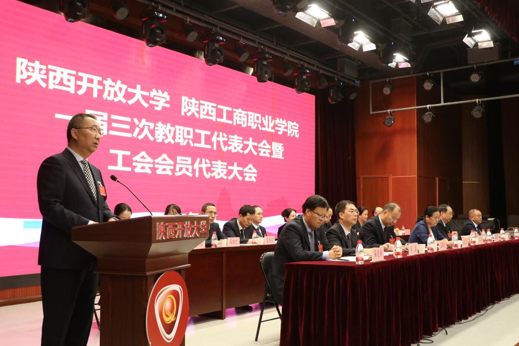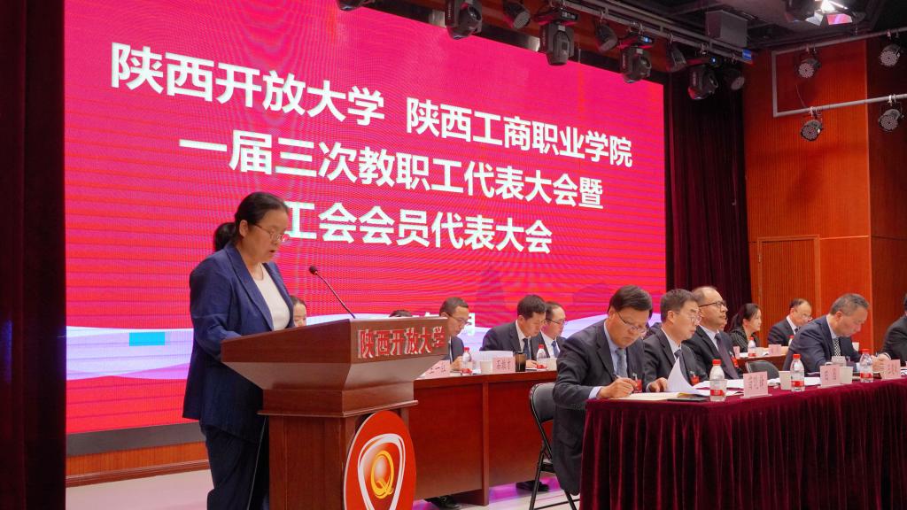 龙治刚指出,各位代表发挥主人翁作用,切实履职尽责,提出了很多宝贵意见和建议,充分展现出高度的责任感、使命感,彰显了广大教职员工对学校事业发展的信心。他强调,学校要实现高质量发展,建设一流开放大学和“双高”学校目标,全面完成党代会各项任务,必须在坚持“一张蓝图绘到底”的同时做到“一茬接着一茬干”,围绕中心工作,统筹处理好三对重要关系。一是必须统筹好教育供给和社会需求的关系。二是必须统筹好培育学校事业创新发展新动能和更新旧动能的关系。三是必须统筹好做优增量和盘活存量的关系。重点做好三方面工作,一要坚持党的领导,强化思政引领的政治导向,推动党建与业务双融双促。二要激活发展动能,打造标志性教育教学成果,提升学校核心竞争力。三要坚定发展信心,营造有干劲的创业氛围,展现开大人的使命担当。全体教职工要在校党委的坚强领导下,以本次“双代会”为起点,紧紧围绕学校第一次党代会确立的发展蓝图,对标“十四五”发展规划和年度工作要点,拿出“开局即冲刺、起步即决战”的拼搏劲头,凝聚“众人拾柴火焰高”的团结力量,在人才培养、科学研究、产教融合、社会服务等各领域精耕细作、追求卓越,以更高站位、更实举措、更强担当,共同书写服务教育强国、教育强省建设的“陕开答卷”,共同奏响新时代陕开人的奋进强音。