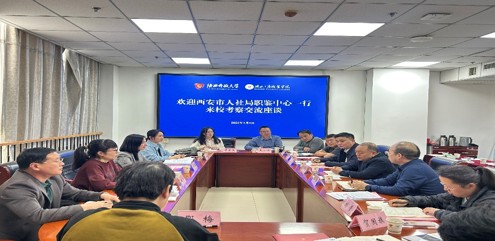 3月9日下午,西安市人力资源和社会保障局职业技能鉴定中心副主任阎静一行来校考察交流。副校长王中锋出席并讲话,各二级学院及相关部门负责人参加座谈。