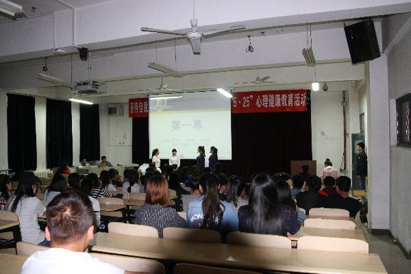 晚上,大学生心理社团在阶梯二教室举行了校园心理情景剧表演活动。同学们用汗水和泪水演绎出面对友情、爱情和亲情时的种种困惑和心理冲突,最终宣泄了情绪,消除了内心压力,增强了适应环境和克服危机的能力,达到了促进学生自我成长的目的。精彩的情景剧内容和学生演员投入的表演赢得了现场师生的阵阵掌声。