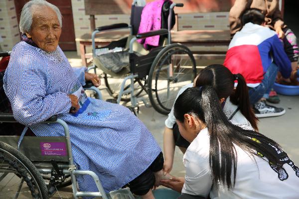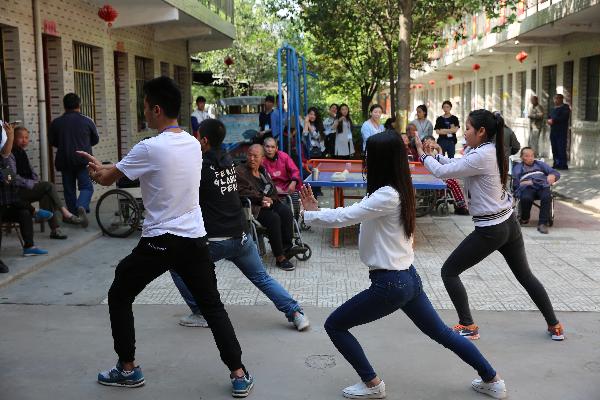 同学们走进老人居住的公寓,给他们一一送去了提前购买的食品、水果和生活用品,为老人们洗脚、剪指甲、整理房间、打扫院落、陪老人聊天;为活跃气氛,同学们还为老人们送去了精彩的歌舞和太极拳表演,让老人们在欢歌笑语中度过了美好的一天。
