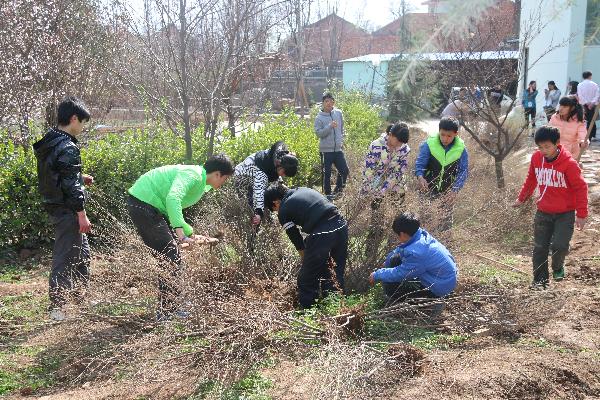 与孩子们共同劳动、美化家园
