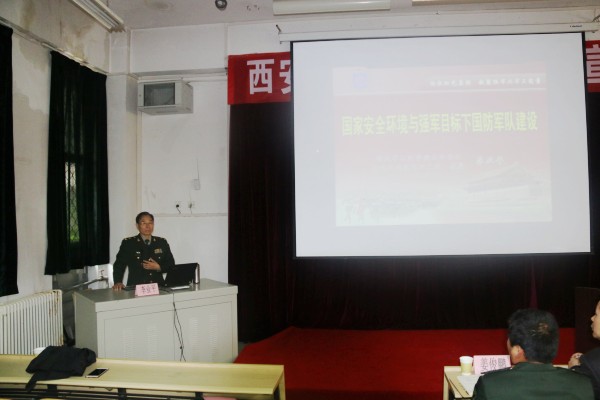 4月6日,我校邀请解放军边防学院李业平教授在阶梯2教室为广大学生作了题为《国家安全形势与强军目标下国防和军队建设》的讲座。莅临会场的还有长安区武装部、郭杜武装部的有关领导,我校学工部、团委有关负责人,各系辅导员、2015届校学生会干部及第二期“青马工程”培训班学员共160人参加。