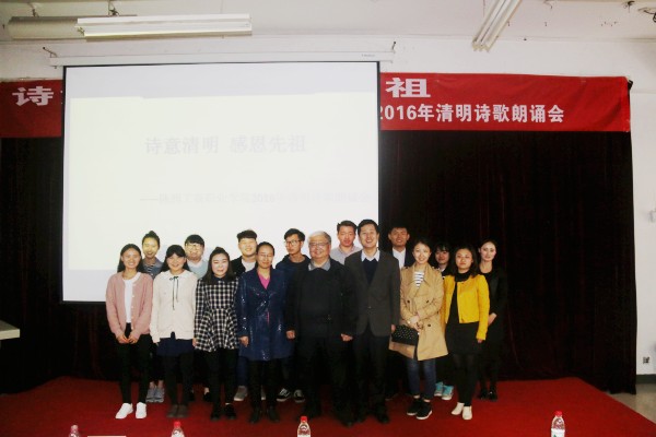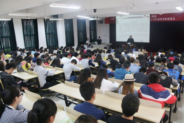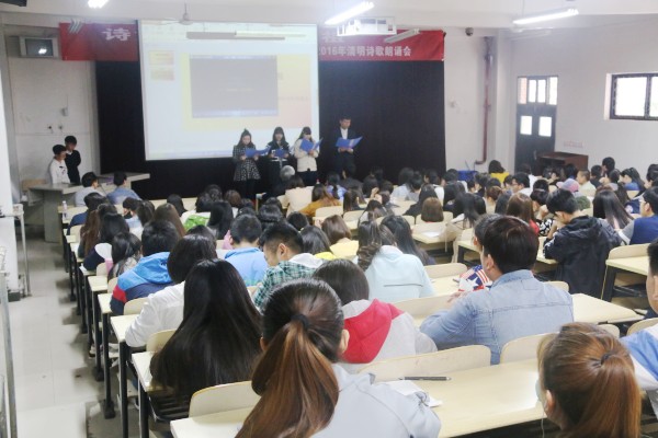 为贯彻落实省委高教工委、共青团陕西省委开展“诗意清明·感恩先祖”校园诗歌朗诵活动精神,在青年学生中继承和弘扬中华优秀传统文化,我校学工部(团委)于4月8日开展了“诗意清明·感恩先祖”校园诗歌朗诵会活动。活动在阶梯2教室举行,各系相关教师、“青马工程”第二期大学生骨干培训班学员和学生干部共160余人参加。
