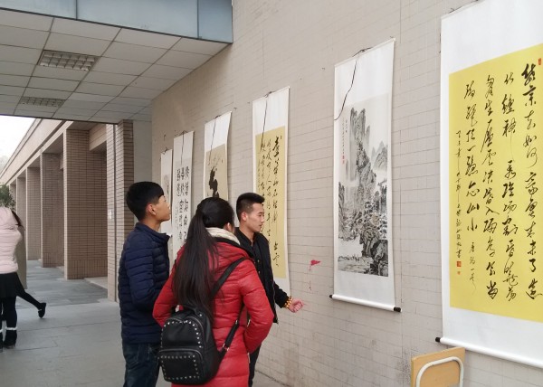 为了丰富校园文化生活,提高学生文化艺术修养,在新年来临之际,由校团委主办、书法协会承办的迎新春学生书画展于12月28日——12月31日在教学楼西口举行。