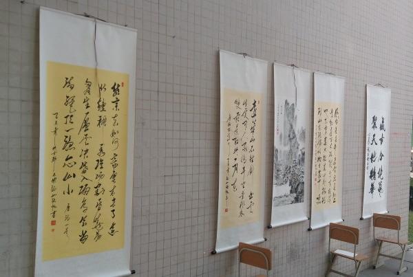 本次活动共展出作品22幅,其中行书、隶书、楷书、草书等书法作品17幅,古代山水画、青绿山水画、写意山水画等书画作品5幅。作品展出过程中,参观的老师、学生络绎不绝,大家在优秀作品前总驻足良久,认真品鉴,活动受到了师生的一致好评。12月31日,书法协会会长张帆和协会会员在教学楼西口开展“写对联,送祝福”活动,通过为广大师生书写对联,送上新年祝福,表现了喜气、祥和的新年气象。