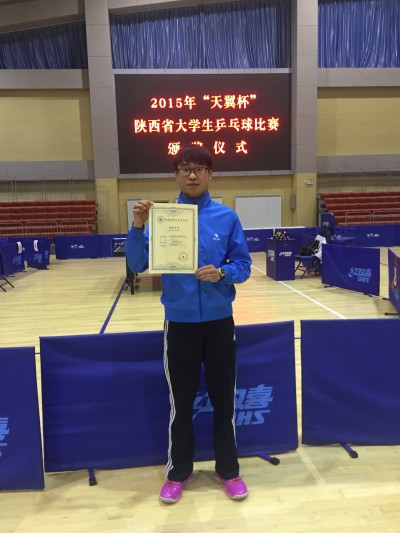 12月2日至4日,2015年陕西省大学生乒乓球比赛在宝鸡文理学院体育馆举行,省内41所高校的近500名运动健儿参加。比赛设甲、乙、丙三个组别,我校代表队参加了丙组(高职)男子团体、单打和双打三项比赛。