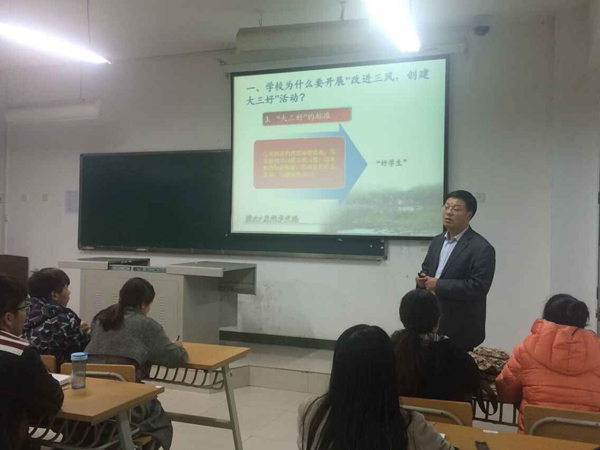 会上,系主任苗晓锋分别从我校改进“三风”,创建“大三好”的原因、学生干部的角色定位以及对学生干部的基本要求等方面进行了阐释。他分析了学生骨干在促进学风建设、争做“好学生”活动中的榜样作用,结合自己的学习经历和工作经验,向同学们生动地讲述了一名合格的学生干部应该具备的良好品质、道德素养、工作能力和方法技巧。苗主任还与部分学生干部进行了互动交流。