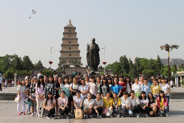 5月6日,现代服务与管理系2014级旅游管理和旅游英语两专业学生在李恩菊、吴珊珊和董姣老师的带领下赴陕西历史博物馆和大雁塔景区进行专业认知实习。