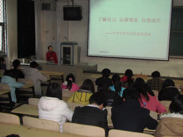 任经理的讲座题目为“了解自己,认清现实,自我成才”,她告诉同学们,大学生就业要从了解自己开始,要善于利用sowt分析法对自己进行剖析,在对自己有了全面的了解和准确的定位之后,再去寻找工作。她鼓励同学们要多参加社会实践活动,认清社会需求,寻找差距,不断进行自我完善;在就业过程中提高自我能力,加强自学能力,提升个人综合素质。
