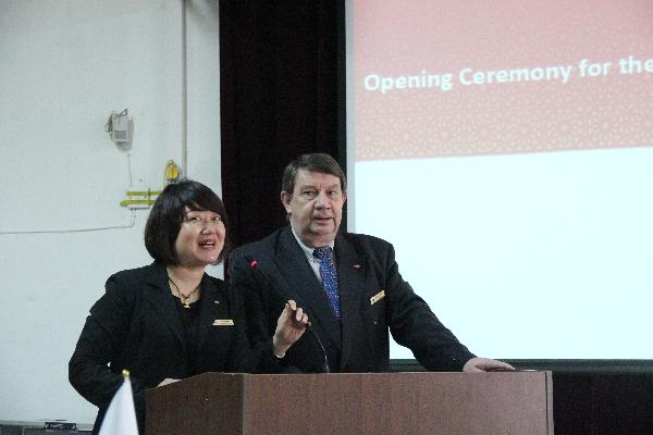 西安皇冠假日酒店总经理(Michael Monks)代表洲际集团对洲际英才学院陕西工商职业学院分院2014级全体新同学表示祝贺,他希望同学们能够珍惜洲际英才班的学习机会,要好好学习,认真工作,在不久的将来能够成长出一批酒店中高层管理人才。