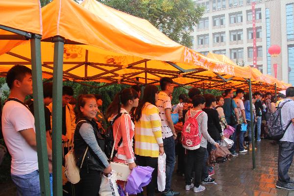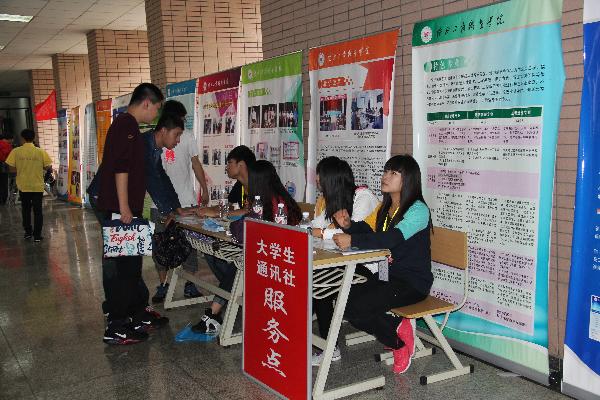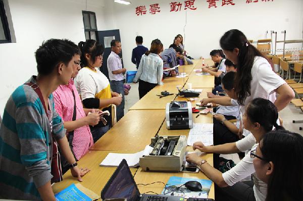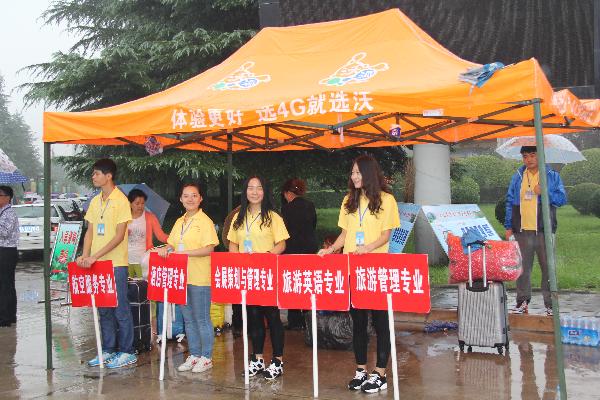 现代服务与管理系学生志愿者整装待发迎接新同学