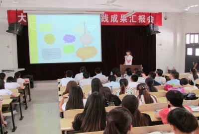 为了以实际行动响应习近平总书记“为实现中国梦奉献智慧和力量”的号召,鼓励学生勇于社会实践,实现“好学校,好老师,好学生”的“大三好”目标,学校启动了“体验多彩生活,助力青春梦想”2014年寒假社会实践调研活动。6月18日,大学生社会实践成果汇报会在阶梯三教室举行,各系师生共170余人参加。人事处处长吴宏梅,合作办学处处长林静,学工部部长刘永安、雷玉翠教授,党政办公室副主任陶龙超担任评委。