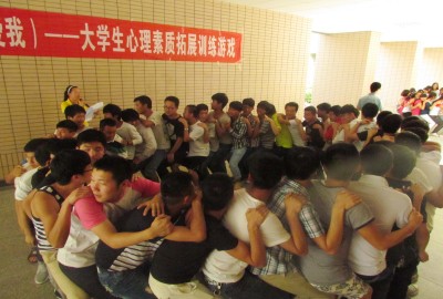 5月14日,大型心理素质拓展训练游戏拉开了序幕。近二百名学生在学工部国家心理咨询师王玲老师的带领下,进行心理游戏。“成长三部曲”、“松鼠搬家”、“人椅”、“找零钱”、“无家可归”、“信任背摔”……一个个别开生面、风趣幽默的游戏相继展开,现场气氛热烈,新奇的游戏教育形式,激发了同学们对心理学的浓厚兴趣,引发了同学们对心理健康的关注和思索。