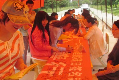 5月22日的大型现场心理咨询活动是“5.25大学生心理健康节”活动的高潮。活动当天,举行了千人横幅签名活动,工作人员现场分发1000份《大学生心理健康知识点滴》宣传彩页。十余名校内外资深心理咨询师为同学们提供心理咨询服务,帮助同学们排解烦恼、应对压力。