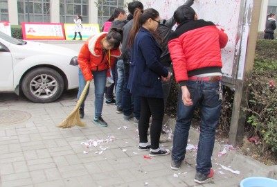 志愿者清理校外广告