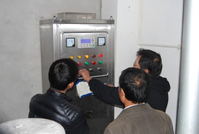 后勤处、物业公司相关人员调试供水设备
