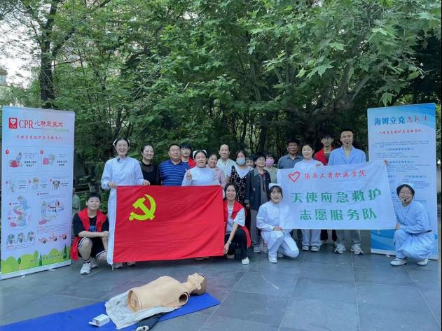 为落实职业教育活动周工作,推进党支部“送健康映初心”党建品牌建设,5月16日下午,护理学院学生党支部党员走进雁塔区长延堡街道明南社区,开展“党建引领促发展,校地联动护健康”志愿服务进社区公益活动,为社区老百姓提供零距离健康服务。