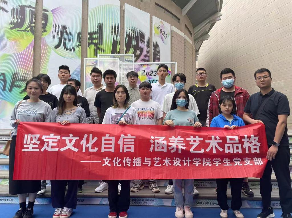 6月21日下午,文化传播与艺术设计学院学生党支部组织学生党员、入党积极分子、团学干部等学生骨干赴西安美术学院参观“时空留痕 无界西美”2023西安美术学院本科毕业作品展。