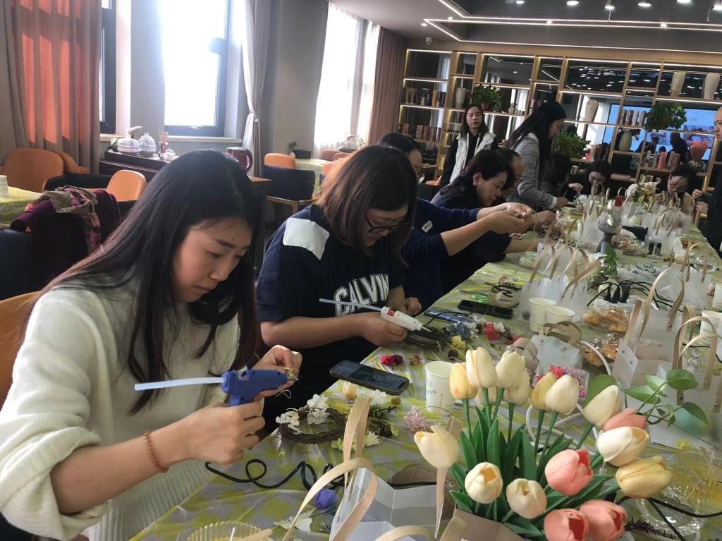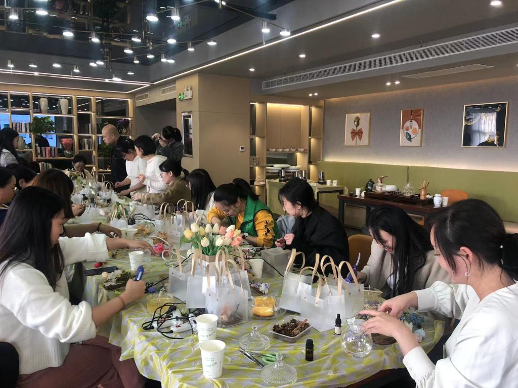 为深入学习贯彻习近平新时代中国特色社会主义思想,促进中华传统文化创新发展,丰富教职工业余生活,提升教职工审美情趣,增强团队凝聚力,11月10日下午,会计金融学院分工会举办了主题为“永远跟党走 花香透盈袖 茶香满校园”的花艺品茗活动,校工会主席牛文娟参加活动。