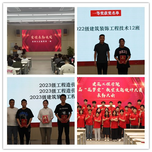 建筑工程学院共有25个班级积极参加,设计结合专业特色、党史、爱国、传统文化、环境保护等多种教室文化主题,通过精心设计布置,经学院宣传动员、初评、复赛,最终评出一等奖1个、二等奖3个、三等奖5个。