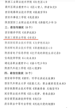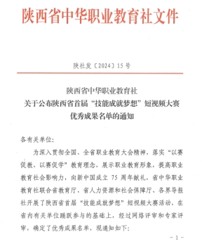 近日,由陕西省中华职业教育社联合省教育厅、省人力资源和社会保障厅主办的陕西省首届“技能成就梦想”短视频大赛”活动结果公布,学校选送作品《有我》,从106个作品中脱颖而出,获评最佳传播奖。