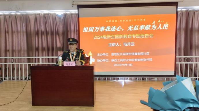 为进一步激励广大师生从党的百年伟大奋斗历程中汲取智慧和力量,不断探索党建共建新路径,近日,智能制造学院党总支与鑫泰园社区举办党建结对共建活动,邀请退伍军人马升云为明德校区2024级新生作《祖国万事我连心 无私奉献为人民》专题报告。鑫泰园社区相关工作人员、智能制造学院全体辅导员及2024级新生代表参加了报告会。