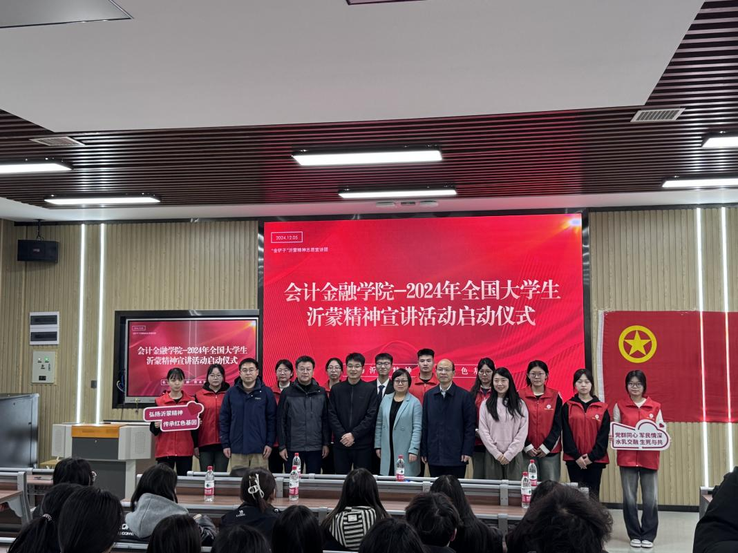 12月5日,会计金融学院分团委在郭杜校区举行了2024年全国大学生沂蒙精神宣讲活动启动仪式。活动依托会计金融学院沂蒙精神“金铲子”志愿宣讲团开展系列活动,该宣讲团入选2024年全国大学生沂蒙精神志愿宣讲团,沂蒙精神“金铲子”志愿宣讲团将按计划有序开展沂蒙精神宣讲活动。