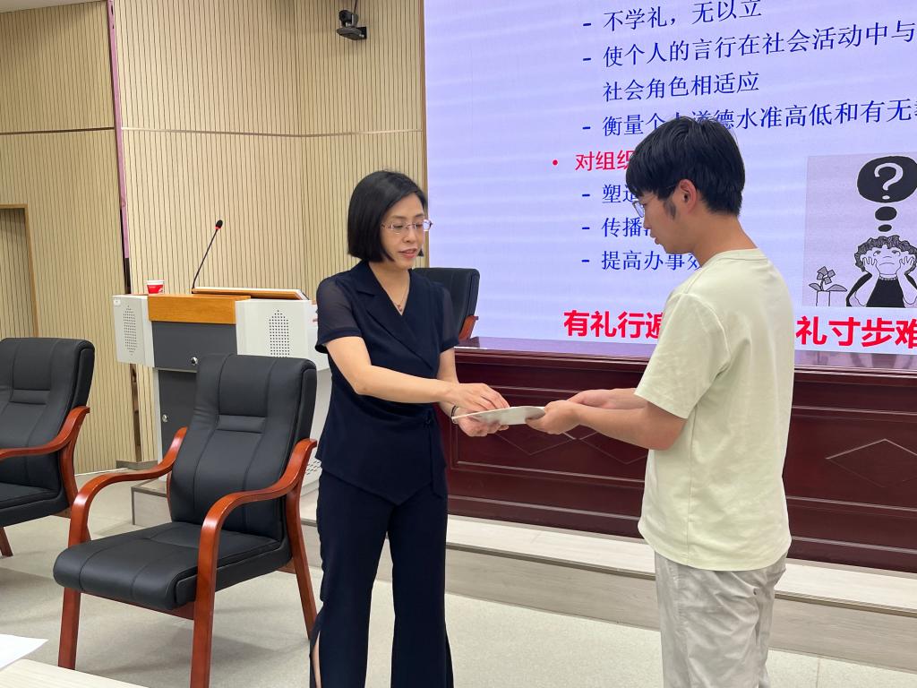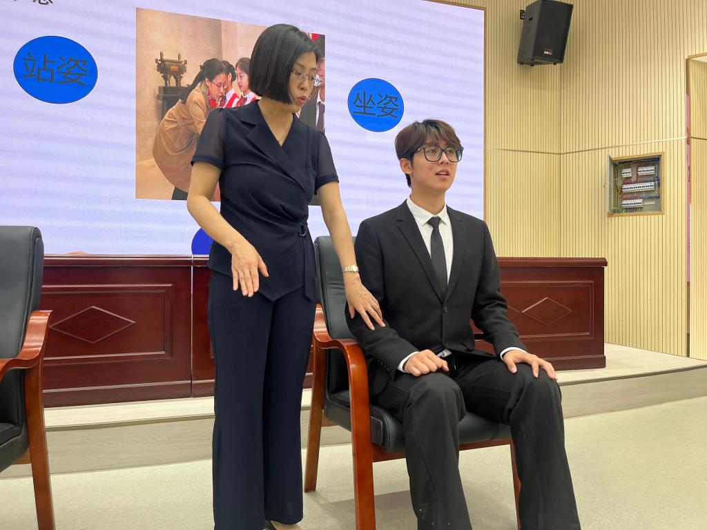 讲座围绕职业形象、社交礼仪、沟通技巧等内容展开,通过情景模拟、案例分析和互动问答,演示了商务场合中的礼仪规范。参加活动的同学们在老师的指导下积极参与演练,收获颇丰。