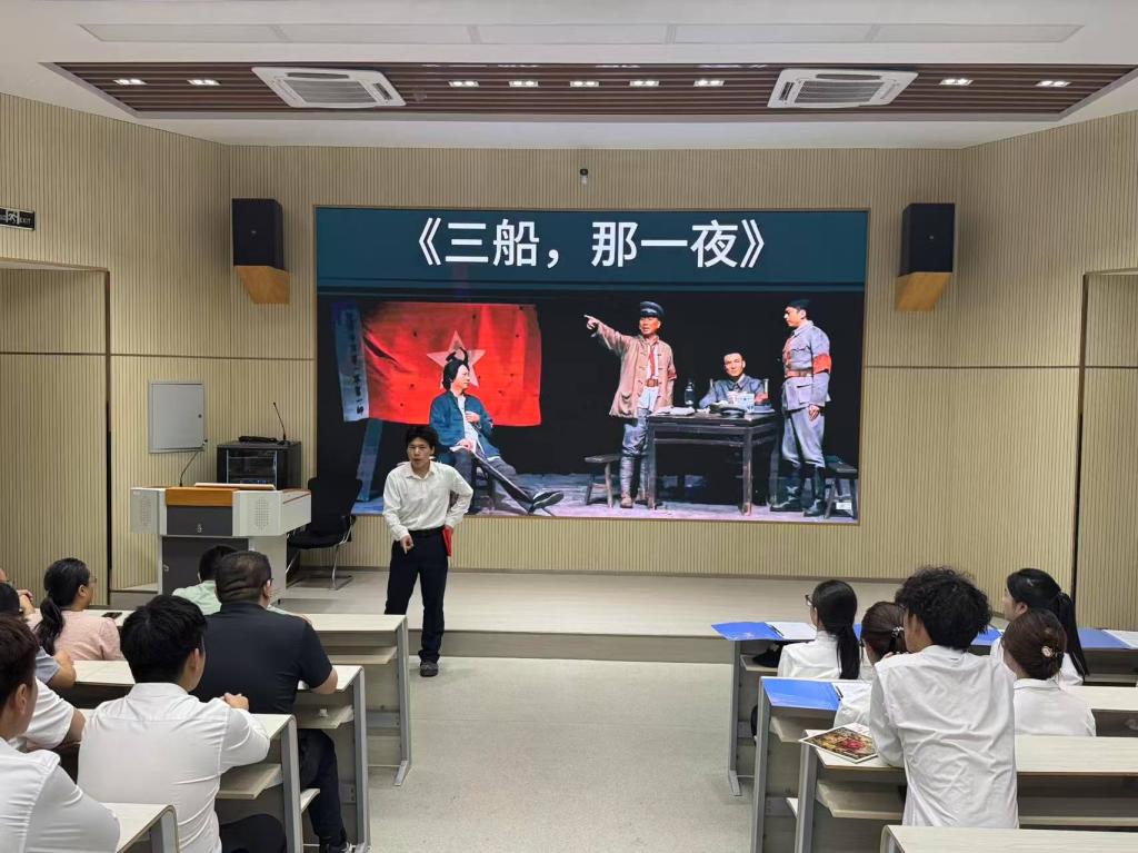 活动分三个环节:支部学生党员通过朗诵诗歌《党的礼赞》《百年征程,红心向党》,展现党从“南湖红船到复兴巨轮”的百年跨越;通过电影配音《我的1919》,还原巴黎和会外交风云;通过演绎情景剧《三船,那一夜》,演绎“党指挥枪”的建军原则,深刻理解组织建设的政治智慧。