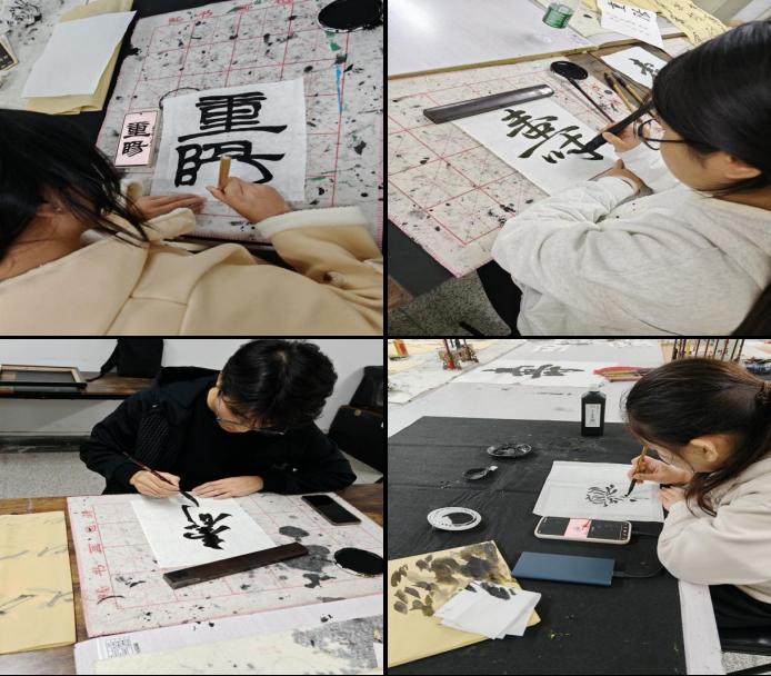 书法社团的青年学子们开展了“笔墨传情 重阳献礼”书法主题活动,用精心书写的作品感恩老教师们的辛勤耕耘与无私奉献。