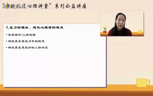 学校人事处组织教职工收看省委教育工委、省教育厅联合西安交通大学邀请北京市高教学会心理素质研究分会、陕西省心理卫生协会大学生心理咨询专业委员会共同举办的“京陕抗疫心理讲堂”系列在线公益讲座,内容包含“理解学生,走进学生心灵”“疫情形势下的情绪调控与压力应对”“压力管理与阳光心态”和“应激反应与情绪调节”等,讲座及时、有效、精准地帮助教职工正确认识了疫情防控期间学生的内心和行为变化,科学应用心理学知识进行自我调适,更好地对学生进行人文关怀与心理疏导。