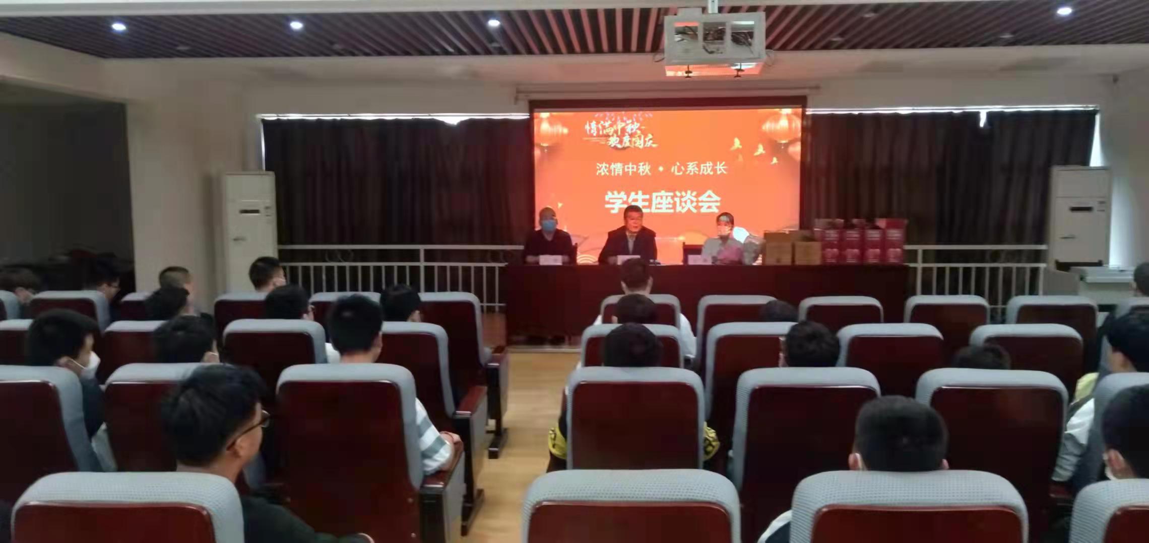 月圆人团圆,师生阖家欢。9月18日下午,在中秋节前夕,中德机电工程与汽车科技学院在明德校区教学楼6楼报告厅组织召开了以“浓情中秋• 心系成长”为主题的学生座谈会,学院党总支书记陈荣、副院长吕燕、王胜及辅导员与2021级新生像家人一样聚在一起,尝月饼、话中秋、诉家国情怀、谈人生理想。