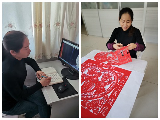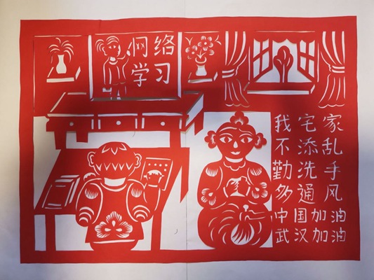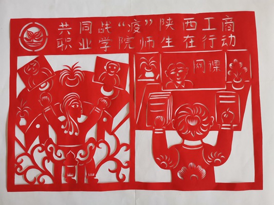 2019级电子商务专业学生云伟英在网上学习之余,发挥个人特长,通过民间剪纸的形式,创作了《共同战“疫”》《中国加油》《停课不停学》等剪纸作品,希望通过剪纸作品引导大家科学防疫,增强战胜病魔的信心和勇气。