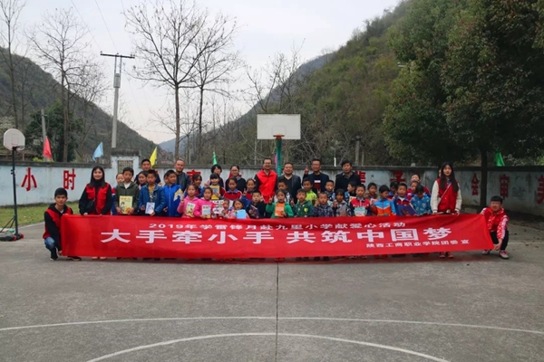 为进一步推动学校脱贫攻坚志愿服务工作,教育引导青年学生以实际行动助力脱贫攻坚,契合2019年学雷锋活动月,3月27日,校团委组织学生志愿者赴学校结对帮扶地区安康市汉滨区早阳镇九里小学开展了“大手牵小手 共筑中国梦”献爱心活动。