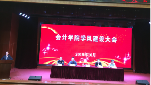 为进一步深化学风建设,创造优良学风环境,10月31日下午,会计学院在学术报告厅召开学风建设大会。会计学院院长王晓红、党委宣传部部长张翼、教务处副处长姚涛、会计学院副院长张耀民参加了本次大会,会议由会计学院副院长李彤主持。