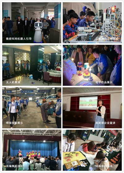 本次活动包括人工智能机器人编程、数控加工作品展示、3D成像及打印体验、三星电子班现场观摩、施耐德电气实验室参观、材料专业特殊金属性能体验、四轴加工中心演示、学前教育及酒店服务与管理专业才艺展演等一系列丰富多彩的活动,维修电工、酒店、焊接、钳工、机加等专业技能竞赛,全方位展示了学院的校园文化、专业实力及教学成果,激起了学生对职业活动周参与热情。