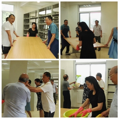 活动中,大家冒着酷暑,把室内外卫生进行了彻底清理,将新购置的书架、期刊架、阅览桌椅、门窗等擦洗干净并摆放到位。大家充分发挥团结协作精神,用工作热情和实际行动践行党员的先锋模范作用。据悉,按照学校要求,明德校区图书阅览室下学期开学即正式对校区学生开放。